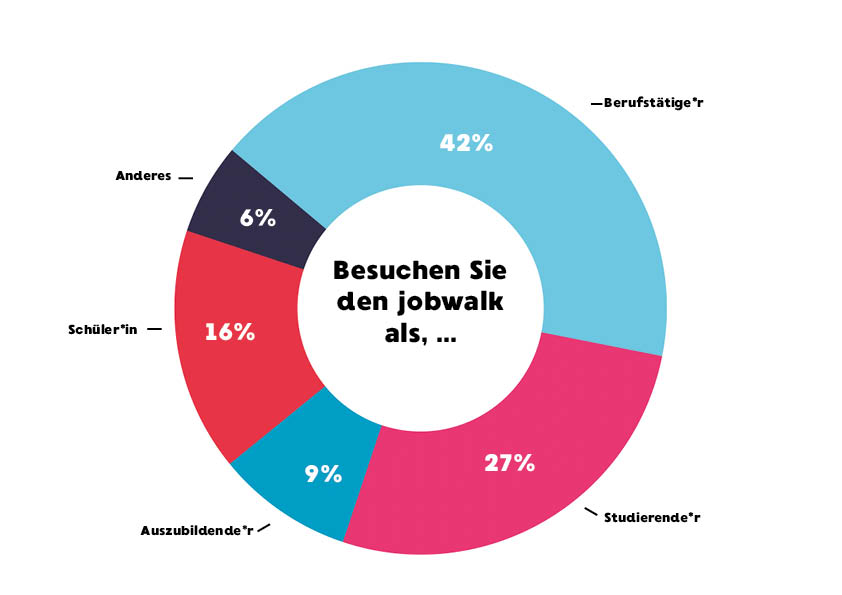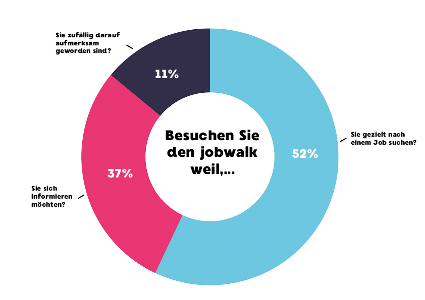 Sicherlich einmalig ist unsere jobwalk-Promotion-Tour. Rund 4 Wochen vor der Veranstaltungen beginnen wir mit unserer Werbetour durch Schulen, Hochschulen, Arbeitsämter, Jobcenter und Innenstädte um möglichst viele Interessenten auf den jobwalk aufmerksam zu machen. Ergänzt wird die jPT durch Plakate, Radio- und TV-Werbung, Werbung in öffentlichen Verkehrsmitteln und großflächige Plakatierungen und natürlich Social Media.